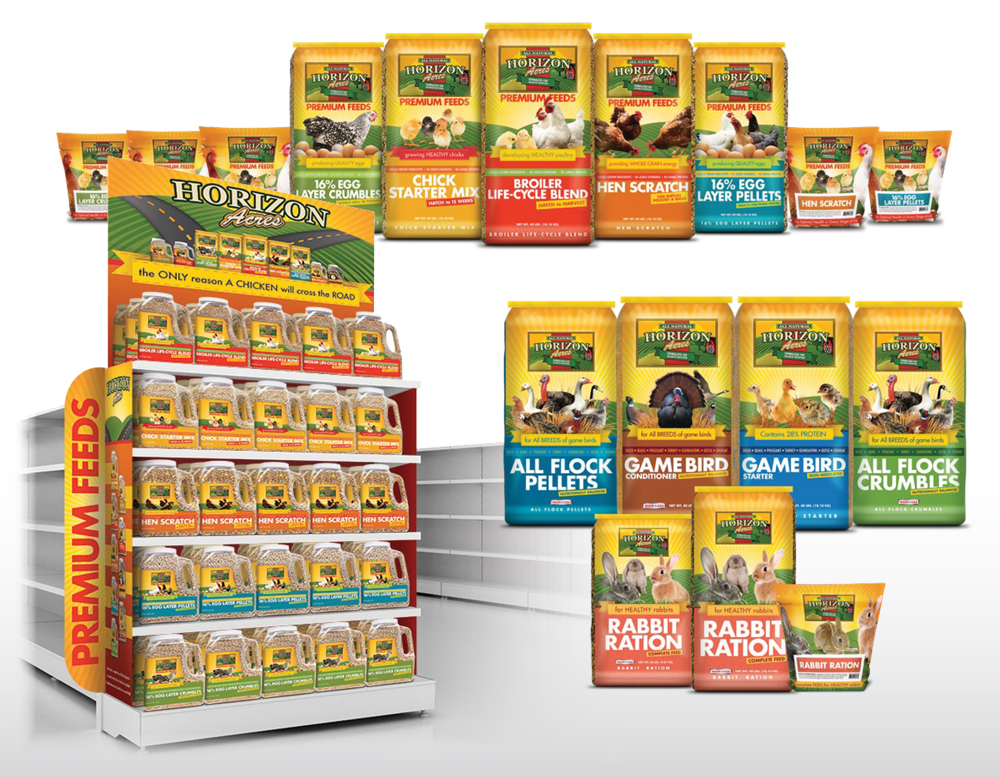 The Wright Group played a pivotal role in developing our proprietary feed brand, Horizon Acres, covering poultry, equine, cattle, and bird seed mixes. The brand’s identity, sales promotions, end-cap displays, and couponing strategies successfully launched our poultry line, has helped us more than double our sales over the past decade. Originally intended for our retail stores, Horizon Acres products are now available through prominent distribution channels.